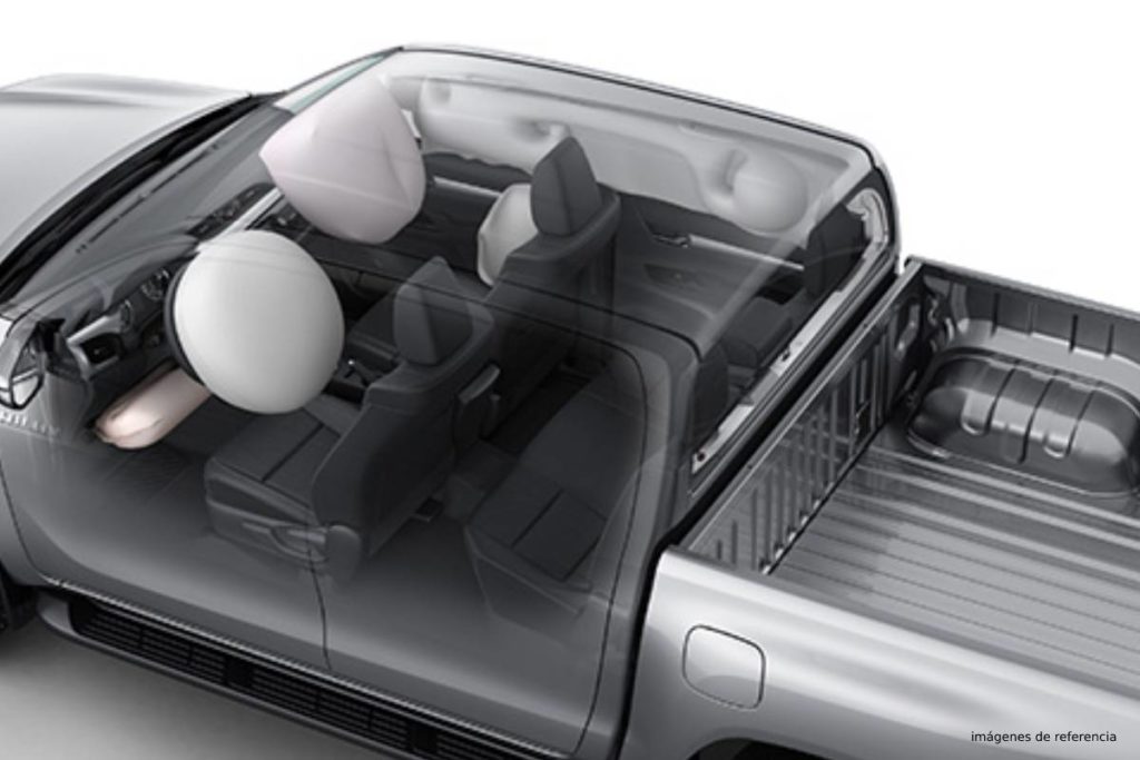 2 frontales para piloto y copiloto, 2 laterales para piloto y copiloto, 2 tipo cortina y 1 de rodilla para piloto, sumando en total 7 airbags para mejorar la seguridad de todos los ocupantes.