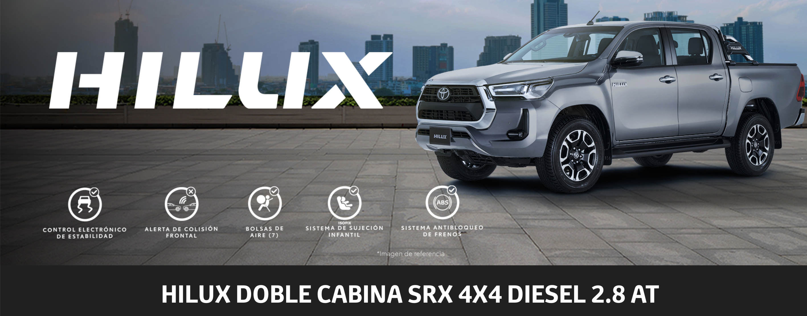 El diseño exterior de la Nueva Toyota Hilux cuenta con innovadoras líneas estéticas. Su totalmente renovado diseño frontal con parrilla sólida complementa su estructura y sus dimensiones más amplias, lo que la hace moderna acentuando la robustez de su carácter así como su fuerte postura.